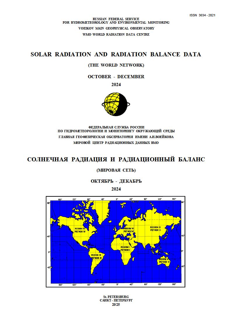 «Solar Radiation and Radiation Balance Data (The World Network)»The World Radiation Data Centre has been publishing solar radiation data collected from the world radiometric network. The issue "Solar Radiation and Radiation Balance Data (The World Network)" is presenting global and diffuse radiation data, radiation balance and sunshine duration data. The first monthly issue “Solar Radiation and Radiation Balance Data (The World Network). January 1964” appeared in 1965. Since 1993 the publication has been issued four times a year. Distribution of bulletins has been organized among the national meteorological services and other institutions responsible for submission of solar radiation data to the WRDC. Current issue: The archive quarterly publications, since 1993, is here Scanned copies of historical monthly publications are here. URL-address of this page: http://wrdc.mgo.rssi.ru/wwwrootnew/publc_en.htm The publisher's address: Voeikov Main Geophysical Observatory |
